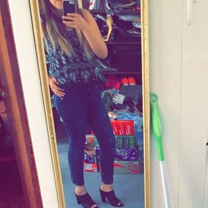 Very cute and fashionable! Wore them once, so they have a bit of black marks at the bottom of the shoe because I've walked in then. Other than that, they're basically new. Size 9.5.