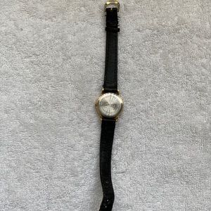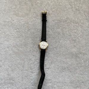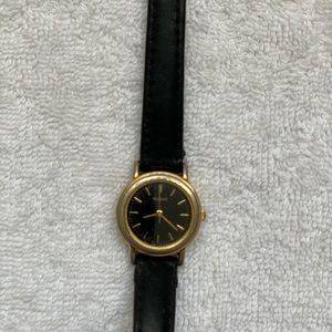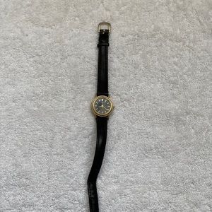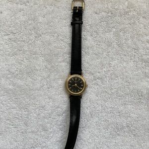 SOLD Black and gold leather vintage watch