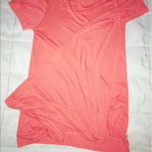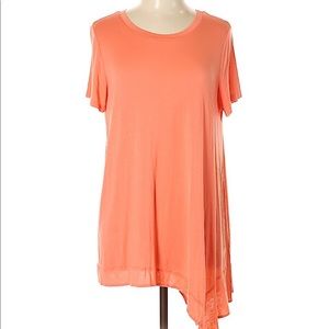 🎉"Hit the Slopes" Short Sleeve Tunic, Scoop Neckline, with sloped style hem. "Umgee" brand by The Rage. Color is Peach. Cotton/Polyester Material. Lightweight, somewhat sheer. Model is wearing a size Small. Size Chart: Small=2-4/5, Medium=5/6-8, & Large=10-12. Size LARGE