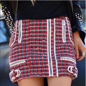 Get this sexy mini for the fall season. Front zip closure. The details are in the zippers and faux leather white trim. Skirt length measures 15 inches waist to hem.