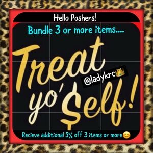@ajas1227 Thankyou soooo much for visiting my closet store and for all your wonderful likes....I truely appreciate it! You are Awesome!🙌🏼🌈Bundle up girl!!!👍🏼👍🏼Bundle 3 or more items, And I will give you a GREAT Discount and some freebies and I willI ship next day after purchases except on Sundays👍🏼☺️🤗🦋Have a wonderful week🌺😘