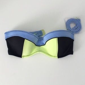 NWT Victoria's Secret The Surf Flirt Bandeau Colorblock Swim Top. Color: Seascape Blue/Iced Kiwi colorblock - BLUICEKWI (7N8). Perfect for spring break and summer! Sold out on VS website. NWT, purchased online so product bag is the tag. Never worn. Bought wrong size. Sold as is. Final Sale.