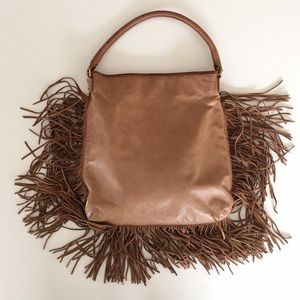 This shoulder bag by Tory Burch is made of high quality materials. The leather is so supple and soft. Its been held a few times still looks great! Tory Burch logo hardware detail between fringe. This bag is very roomy and fits so comfortably under your arm. The fringe moves so beautifully as you move. Sure to make any outfit special. Please check my closet for similar items. Don't forget to like so you can be updated on any price drops. Thanks •