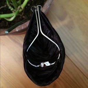 ๐Weekend Wardrobe HP ๐ Elegant black pleated clutch. Removable chain strap/handle. Chain can also be kept attached and enclosed in bag. Snap closure. Approximately 7.5" L x 3.5" H. Perfect for special events, prom, weddings or dressy occasion. It's what to wear with your LBD (little black dress). Please ask if you have questions. Gothic goth