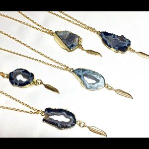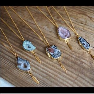 This is Function & Fringe's best selling necklace! Gold plated drusy agate pendant. Finished with Function & Fringe's signature gold feather charm at the bottom of the pendant. 18k gold plated 16 inch chain. These are designed and handmade in California โค๏ธ no two are alike!