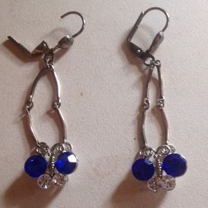 Sterling Silver chain with Butterflies made of blue & clear crystals. 1 1/2" drop. OOAK Handmade by me. 🚫No trades🚫