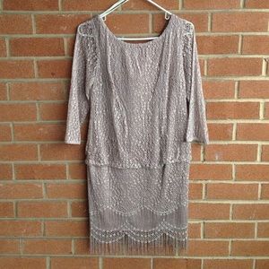 NWOT Gatsby-inspired dress, taupe metallic silver