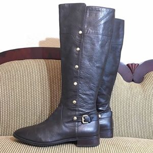 Gorgeous dark brown boots with gold hardware. Strap around the back of heel, full zippers from the foot bed to top of shaft. Worn once. Runs maybe 1/2 size small. 1 1/2" heel. Price is firm unless bundled