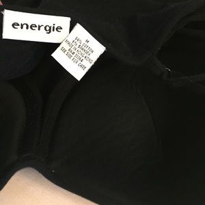 Set of two tank tops with built in lightly padded bras and adjustable straps! Both are stretchy cotton/spandex knits about 12" from armpit to hem (on me this is cropped!) The aqua tank is New York and Company, and has a few pills, hence the low price. The black tank is by Energie and says medium but it fits like a small, no signs of wear at all.  These are great for wearing under a cardigan now, or alone once it gets a bit warmer!  The last pic is of a similar but longer tank, see measurements👆