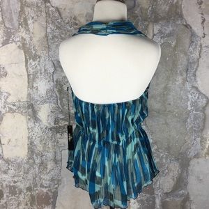 Brand new with $140 tags! Sizes available: small. Super cute flowy dressy high end designer halter top. Vertigo Paris by BCBG blue dressy halter top