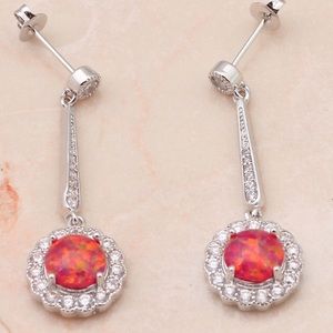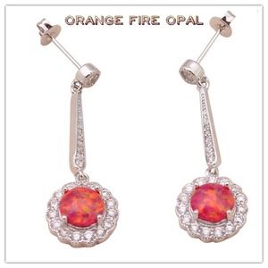 💥925 Silver Orange Fire Opal & White Topaz Earrings💥 Hallmarked 925