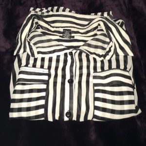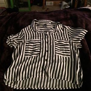 This is labeled as a crop top but I'm quite short so it wears more just like a flowy shirt. It's black and white stripped making it easily styled with anything, or any makeup. It's an XL but I'm a Medium and it's just flowy. ๐ Offer me anything!! ๐