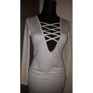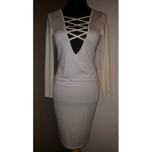 SOLD! Plunging bodycon dress nude sz small