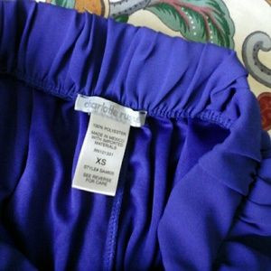These are true royal purple color, the pics look blue! Super cute and comfy. Fitted at the waist and flowy, really cute. In great condition, worn 2 times! Not Brandy, from Charlotte Russe, size xs :)