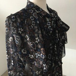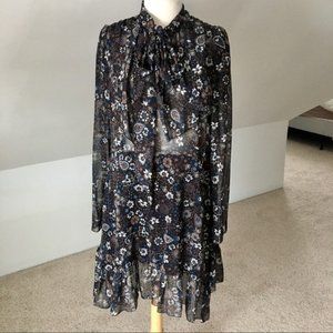 -SOLD- See By Chloe Large High Neck Button Down Pussy Bow Sheer Dress