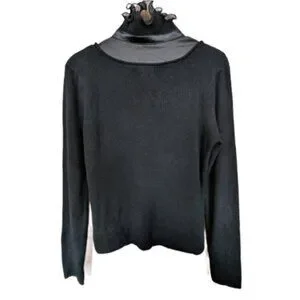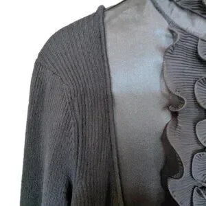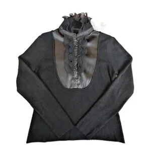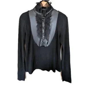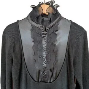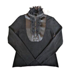 57 Collection Women's Ribbed Sweater With Ruffle and Silk Front Panel