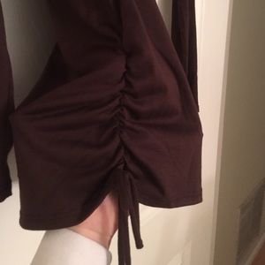 Brand new top! Brown, long sleeve. Tie on the sides at the bottom. V-neck. 64% polyester, 33% rayon, 3% spandex