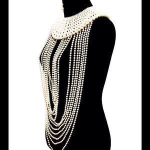 If you love layers of faux pearls and don't mind being the center of attention this beauty is for you! If you want a bit of WOW FACTOR- this stunning set will do it.