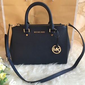 MICHAEL Michael Kors Sutton Saffiano Leather Medium Satchel Color:Navy