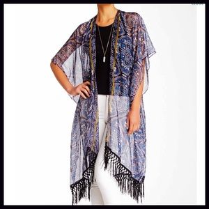 Kimono Long Cardigan Coverup Wrap Cardi Tassel Fringe Cape
