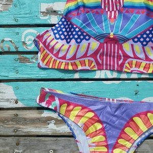 These babies are bright! Such a pretty combination of colors! And high neck swim suits are on trend this year!