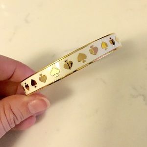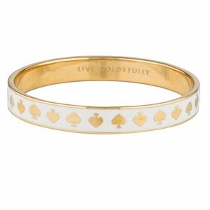 kate spade "live colorfully" cream and 12K gold plated bangle bracelet with gold spades circling the entire bracelet ♠️