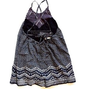 • Beautiful black printed romper featuring adjustable cross-back tie straps.