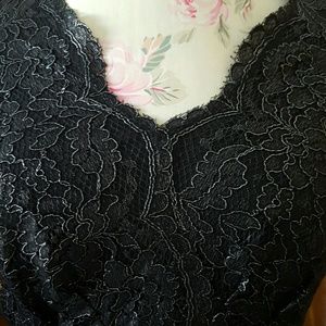Shimmer black lace all over. Great for cocktail parties and weddings. Fully lined