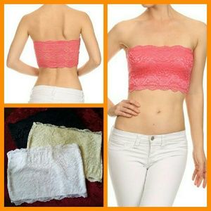 Soft stretchable and fully front lined lace bandeau.