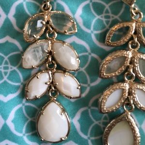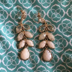 Kendra Scott white and gold earrings. Authentic. Only worn twice. From her earlier collections. Not available anywhere anymore. PLEASE NOTE: THESE DO NOT COME WITH BACKS. Reflected in price.🚫TRADES 🚫LOWBALLS WILL BE DECLINED
