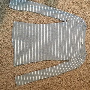 Gray and white striped long sleeve shirt. Great condition ! Thin material, very comfortable fit.
