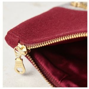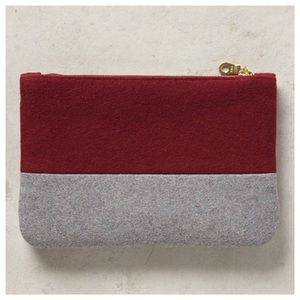 {Anthropologie} Gem Drop Pouch by Shiraleah. Gorgeous wine and grey colors. Wool with polyester lining. Plastic and glass jewel detail. Top zip closure. 6" H x 9" W x .5" D. New in package. Never used.