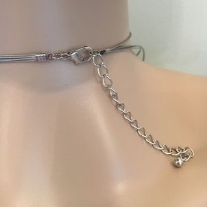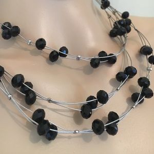 This is absolutely beautiful and it's made from silver wire it has strips the black beads on it and it shines beautifully has three basic strands are connected into one as shown in the picture in the back by lobster clasp. It's also a matching set of earrings that does come with this I took a picture of one of them for you it's a basic hook back dangle & dangle's about an inch long. Enjoy this magnificent set for a fraction of its original cost! Ships boutique & fast!