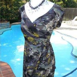 This dress is fabulous! Photos do not do this justice! Sensuous snake print top slithers onto the style scene; surplice neckline and cap sleeves. Side zip. New in original tagged package. Dress got rave reviews!