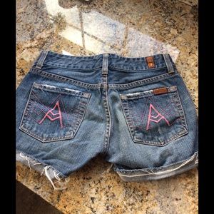 7 Jean shorts, size 25, missing button and broken zipper as shown in picture #2.
