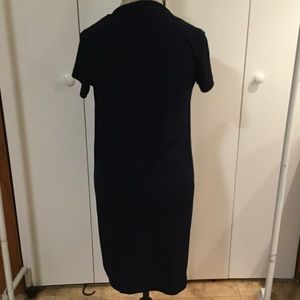Navy blue dress with built in necklace and jacket cover. Wear to work or church. Short sleeves. 40bust 34in long.