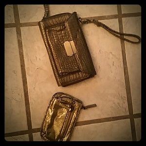Each used only a couple of times, no signs of wear or scratches. In gorgeous gold colors and perfect for going out. Wristlet is from Target, mini clutch is from Charlotte Russe.
