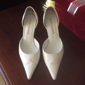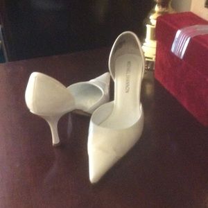 Minimally worn kitten heel slip on leather pointed toe shoes. Thx