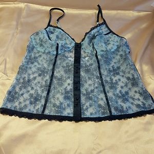 Adorable blue lace top. Come with buttons down size M Camisole. Please be considered! all Items $10 and below, you must bundle if you wish to get more than 15% of discounts. Remember you save in shipping if you buy more. And for me worth a trip to the post office. Thank you for your consideration 💕