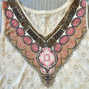 FLASH SALE price 💫 NWT Charter Club Beaded V-Neck Tank. Beading embellishments around collar print. 100% Cotton. Browns & Pinks. Great for Birthday, Anniversary, Gift, Present, Vacation, Cruise, Wedding, Cover Up, Date, Night, Spring, Fall, Winter, Summer, Sexy, Work, Casual, lounging, Daytime, Party.
