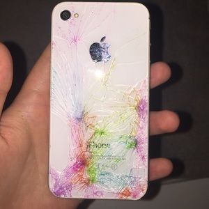 white iPhone 4. the back is cracked and I sharped it. it's still works and it is unlocked. the front screen is not cracked