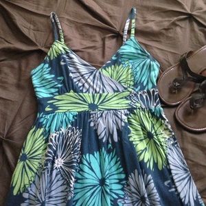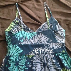Spaghetti strap floral dress. Cotton material is light, airy, and perfect for summer. Adjustable straps and banded waistband for perfect fit. Some minor fading from wear. Excellent condition- only worn a couple of times.