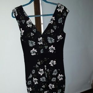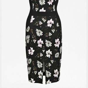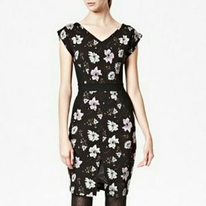 Balance the shapely effect of fitted jersey with soft floral blooms. Wear this dress with patent courts for added polish.