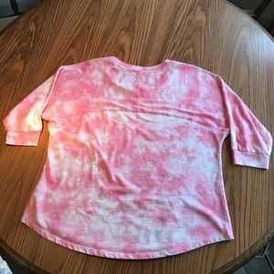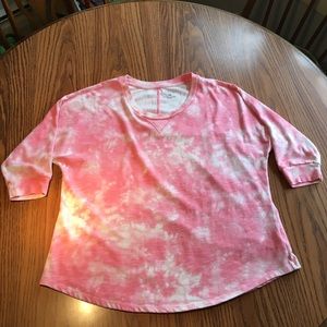 Sonoma life styles 3/4" sleeve light weight sweatshirt, size XL. 24" length (measurements taken from back of shirt, just below collar) the front is a little shorter. Pink & white. Very comfortable. Excellent condition! Would look cute with just about anything. Super cute top! (Also have this in blue and white).
