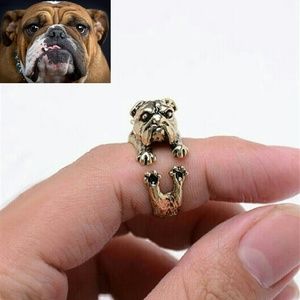 Realistic enlgish bulldog dog ri g. Made from lead free nickel free alloy.