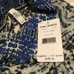 NWT free people "show off your skirt" maxi. Ivory/blue combo. Lightweight rayon, great for summer! Stretch back, flat front at waist. High low skirt. Meaning slightly higher in the front then back.