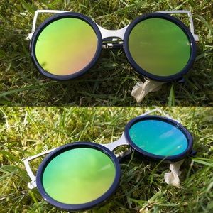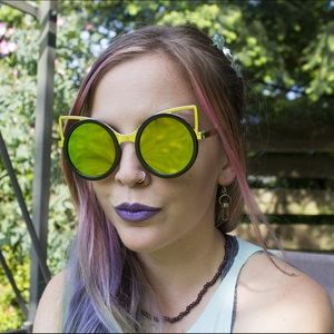 Beautiful brand NWT black and gold oversized cat eye cut out sunglasses with blue-green reflective UV400 lenses. ๐ป These babies are literally so perfect and would make any summer or Burning Man outfit look amazing ๐ combination black plastic and gold metal that feels very sturdy. Comes with soft case. No trades or lowballs pls. Ask about my 2/$25 deal on Sunnies to get ready for symbiosis and summer adventures. ๐ฝ not tagged brand, just thought those with similar taste would like these.โ๐ฝ๐๐ฝ