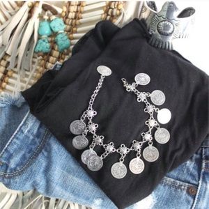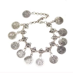 Silver Tone Boho Coin Charm Ankle / Wrist Bracelet