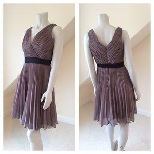 NWT Max and Cleo Party Dress....densely gathered rose taupe chiffon....cross-over bodice...accordion pleat flared skirt...tulle edged contrast waist...back zipper with hook/eye closure...machine washable....graceful and feminine. Retail $178