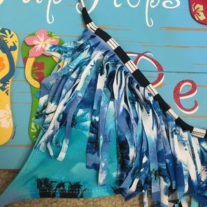 Super cute new with tags tropical fringe print size medium perfect summer colors has removable pads